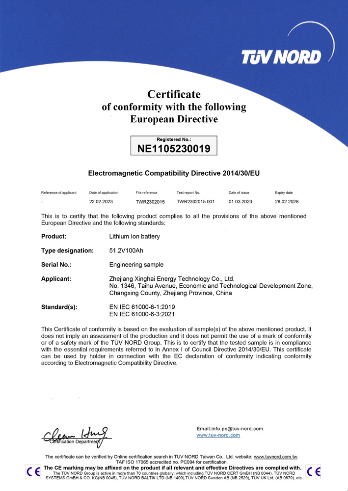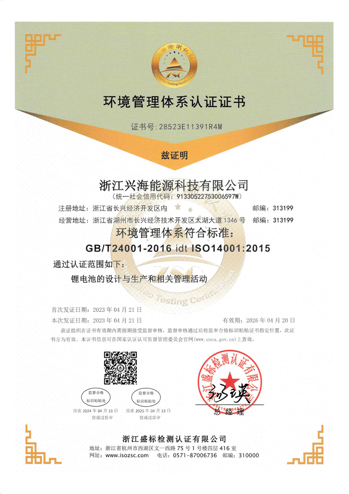 Located in the National Eco &Tech Development Zone of Changxing in Zhejiang, Xinghai Energy was established in 2003.As a national high-tech enterprise and a patent demon-stration enterprise of Zhejiang Province, Xinghai Energy has always focused on the R&D,production, sales and service of lithium-ion batteries. with independent core patents,the company has the capacity of large-scale production of cells and battery packs, andhas grown into a professional integrated energy solutions provider.